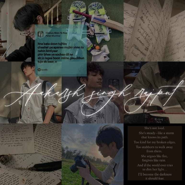 Arnav is the boy who seems unreadable at first glance — calm, composed, with a quiet confidence that draws people in. He doesn't talk much, but when he does, his words stick. He’s protective without being possessive, kind without always showing it, and observant in ways most people miss.